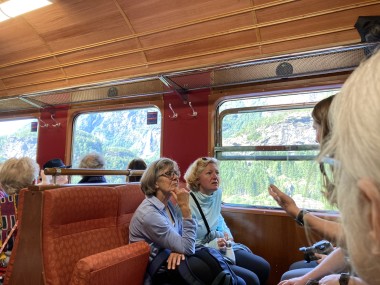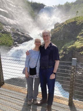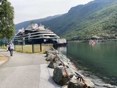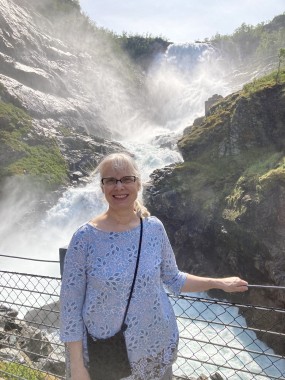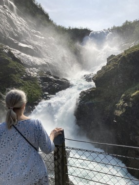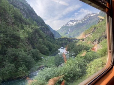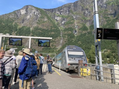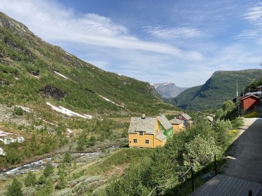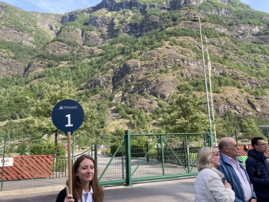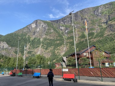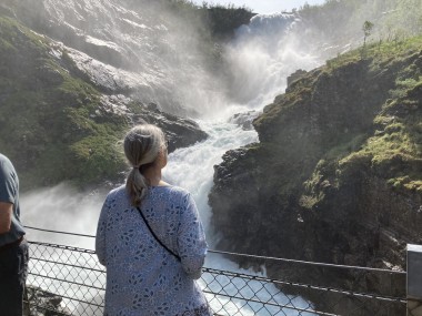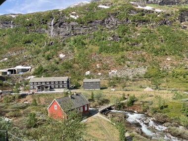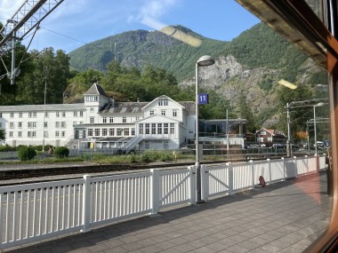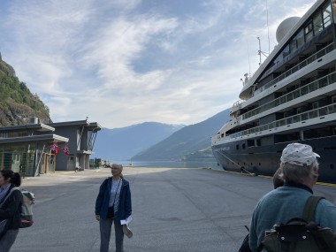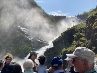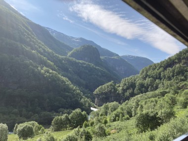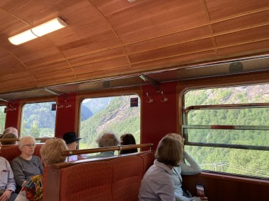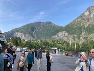 We made port in Flåm, which is at the end of the Aurlands Fjord, and there we boarded the Flåm Railway. This took us up into the hills along the river, crossing it many times, taking us through tunnels, and treating us to some gorgeous views. We stopped and got off the train at an amazing waterfall. There was a dance performance done there, but I missed it. The train then took us up to Myrdal Station where we stopped to take pictures, but stayed on the train. We stopped again at the waterfall on the way back and I got to see the dance performance then. I got some of it on video.