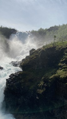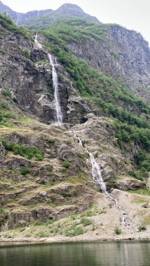 The second video is of a waterfall in the fjord near Gudvangen. As near as I can determine from camera GPS information, this is the end of the Smellagrovi river.
