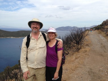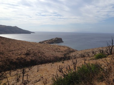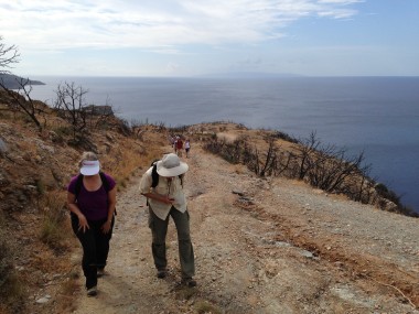 We hiked from where the bus dropped us off into the town of Marmari. There was beautiful scenery as usual, but some of the surroundings were burned trees from a fire that had swept through at some time in the past.
