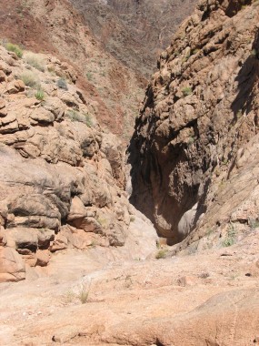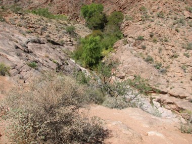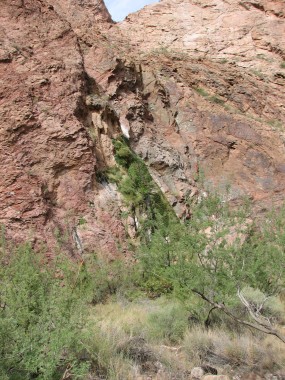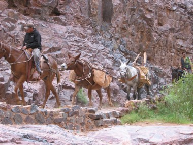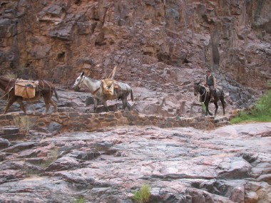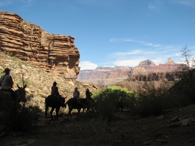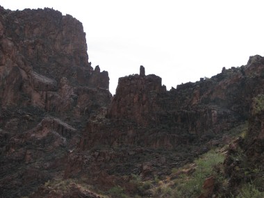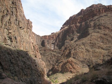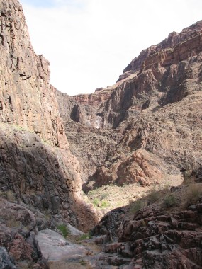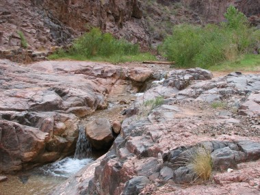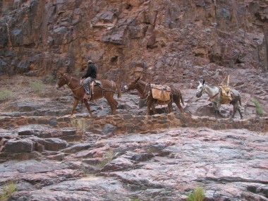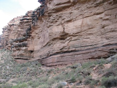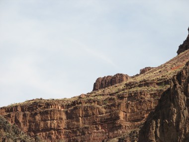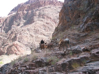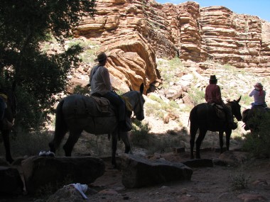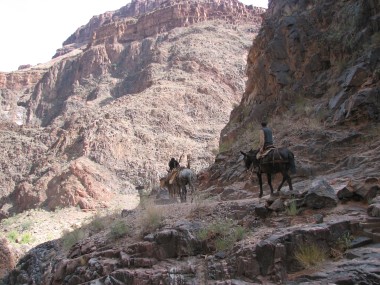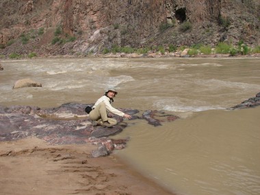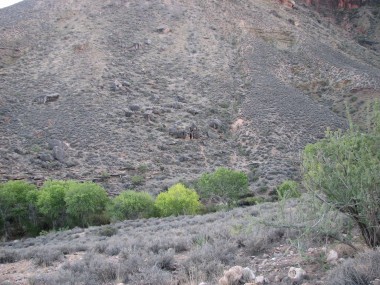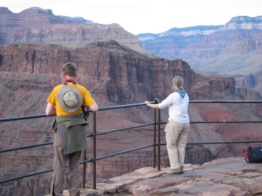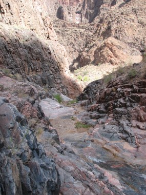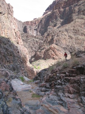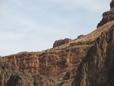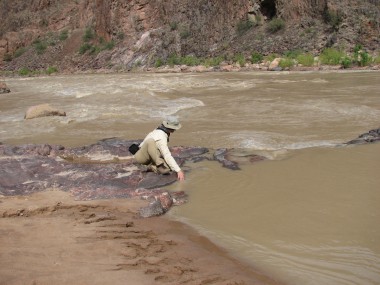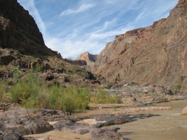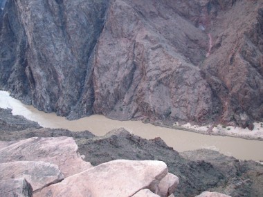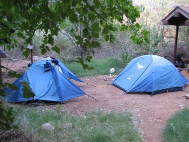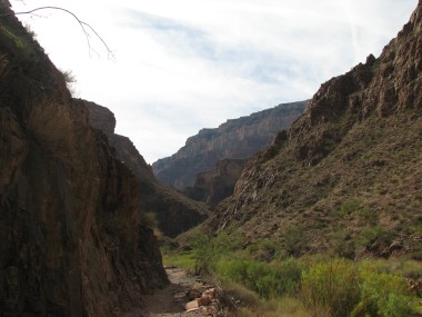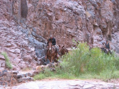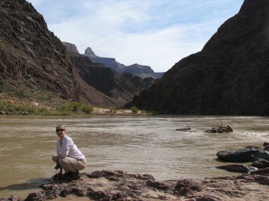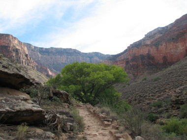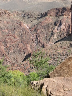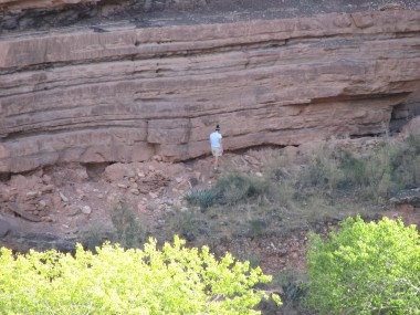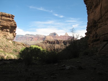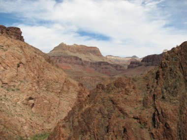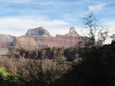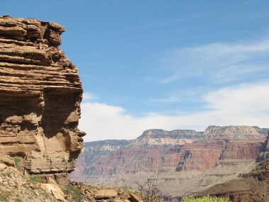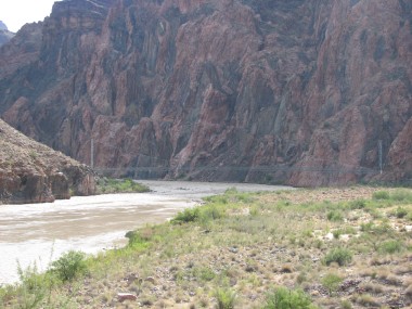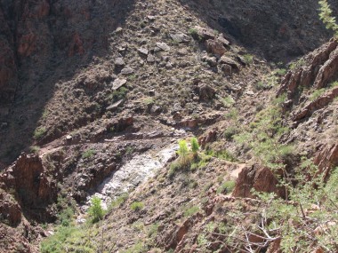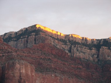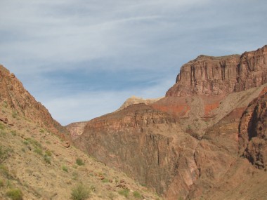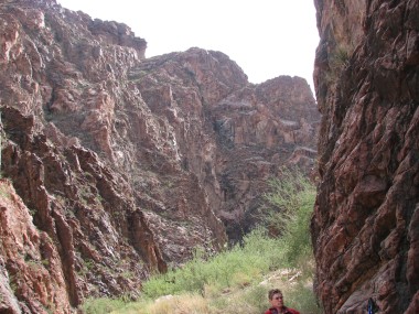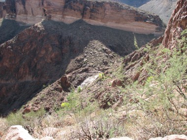 On our third day in Grand Canyon (Thursday, September 27) we hiked from Bright Angel Campground to Indian Garden. Along the way we reached the summit of our inverted mountain and touched the Colorado River. After making camp at Indian Garden, we hiked about a mile and a half out to plateau point to watch the sun set.